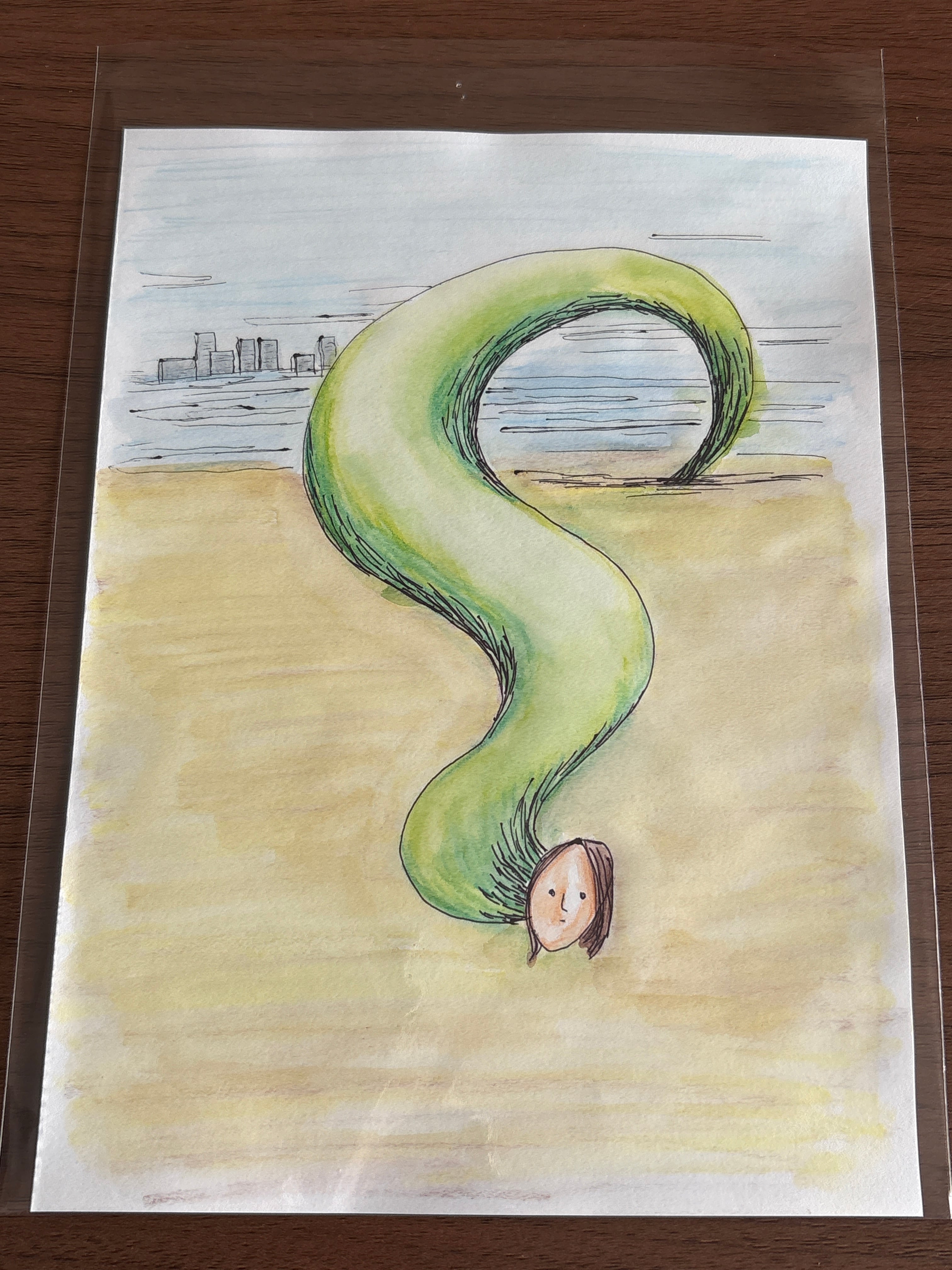 マルマンの薄口タイプの水彩画用紙B6サイズに、ボールペンと水彩色鉛筆で描いています。