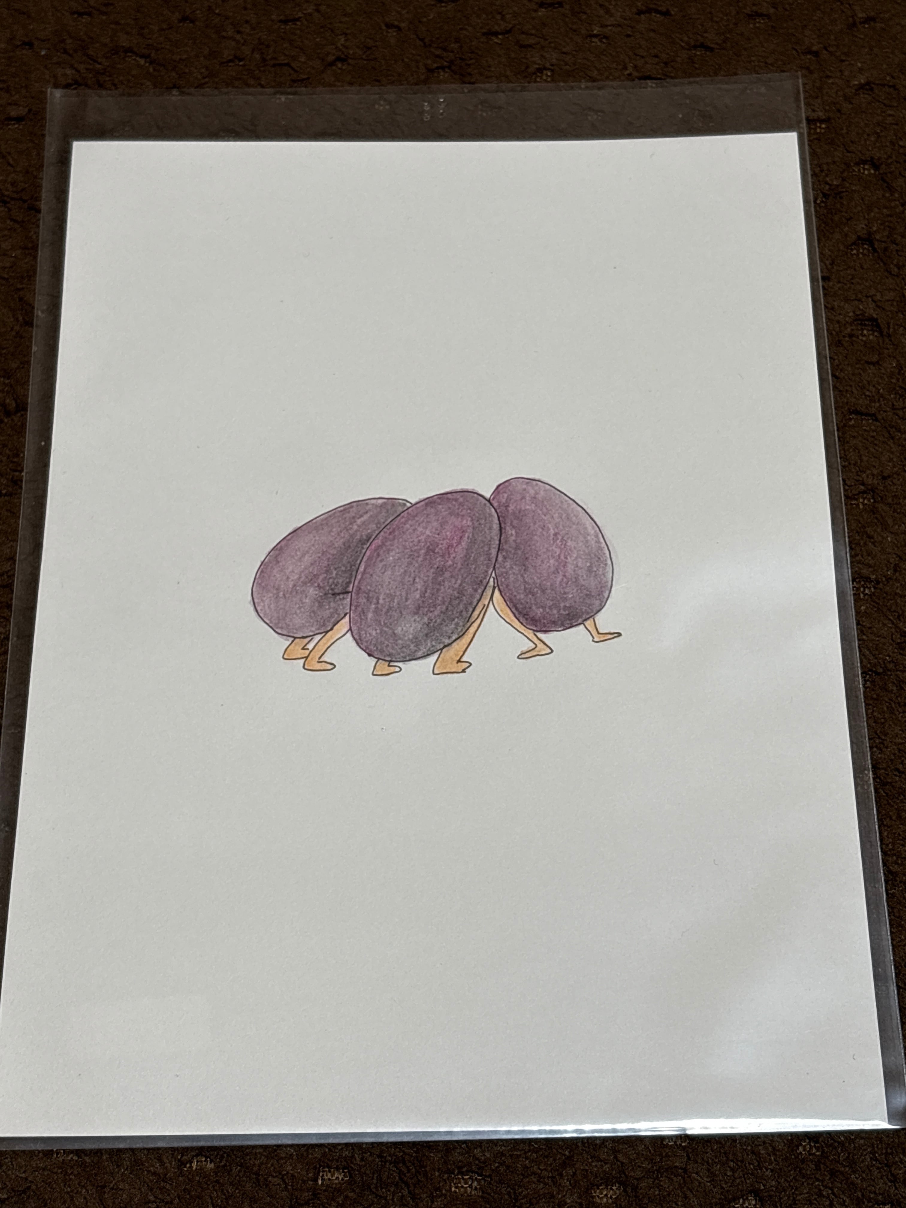マルマンの薄口タイプの水彩画用紙B6サイズに、ボールペンと水彩色鉛筆で描いています。