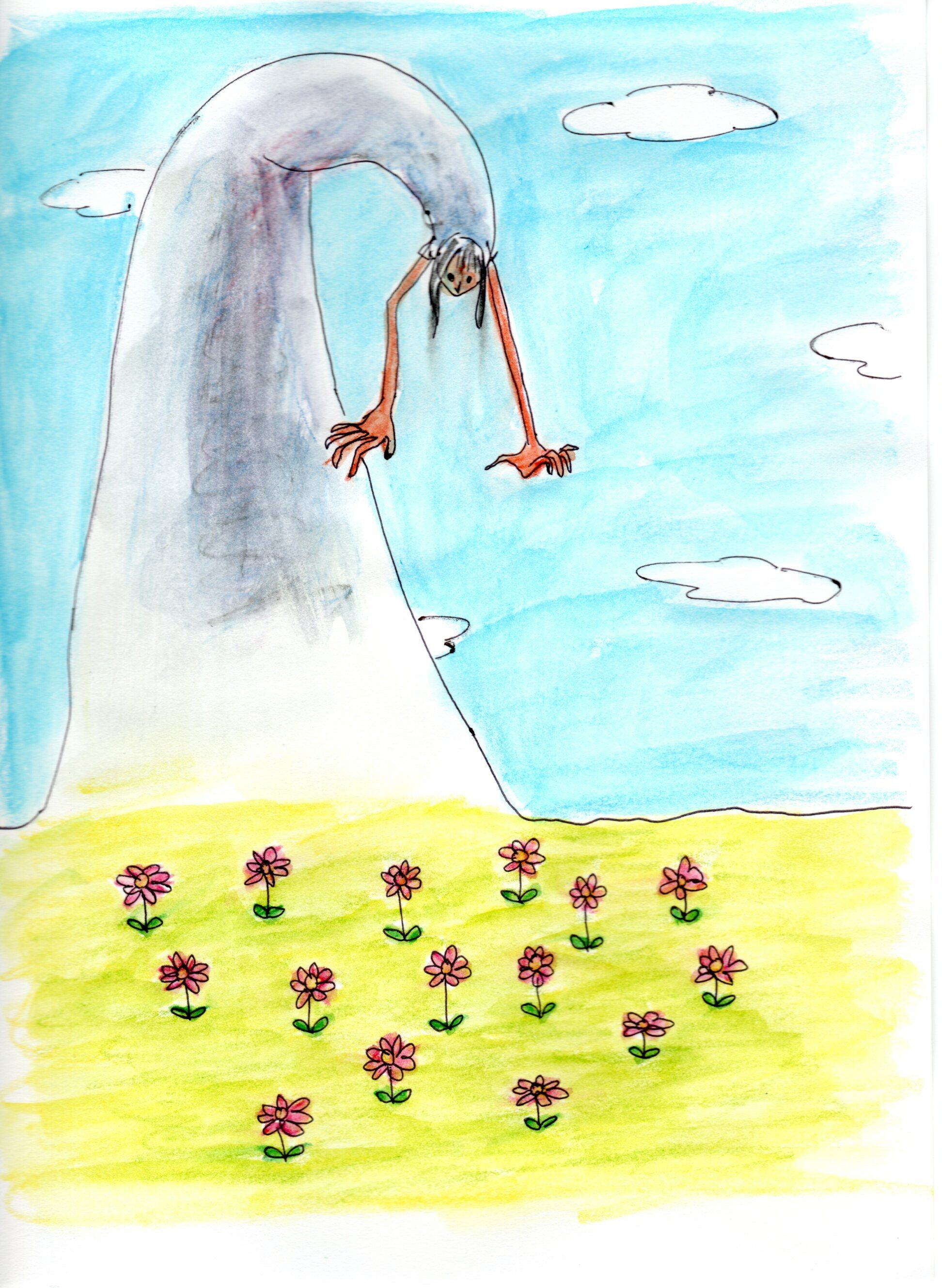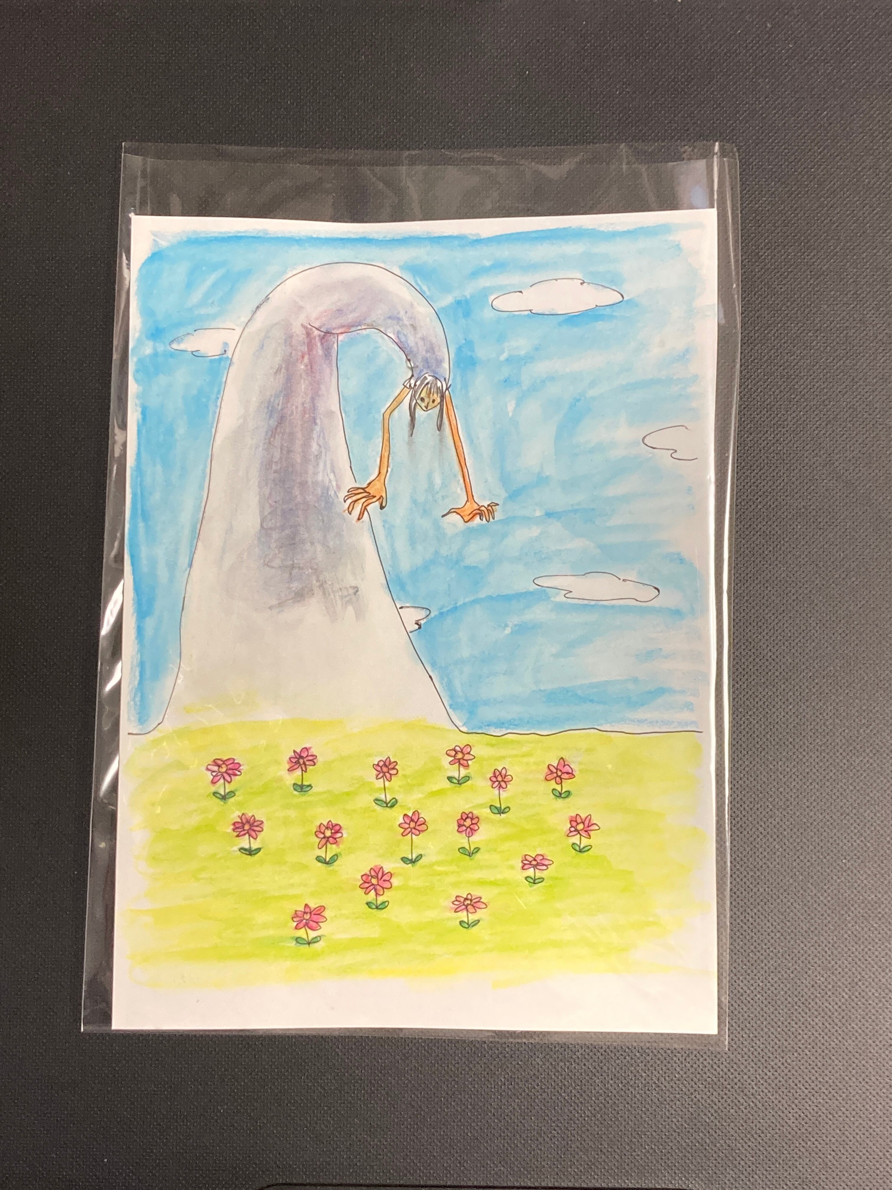 ボールペンで水彩色鉛筆で着彩しています。