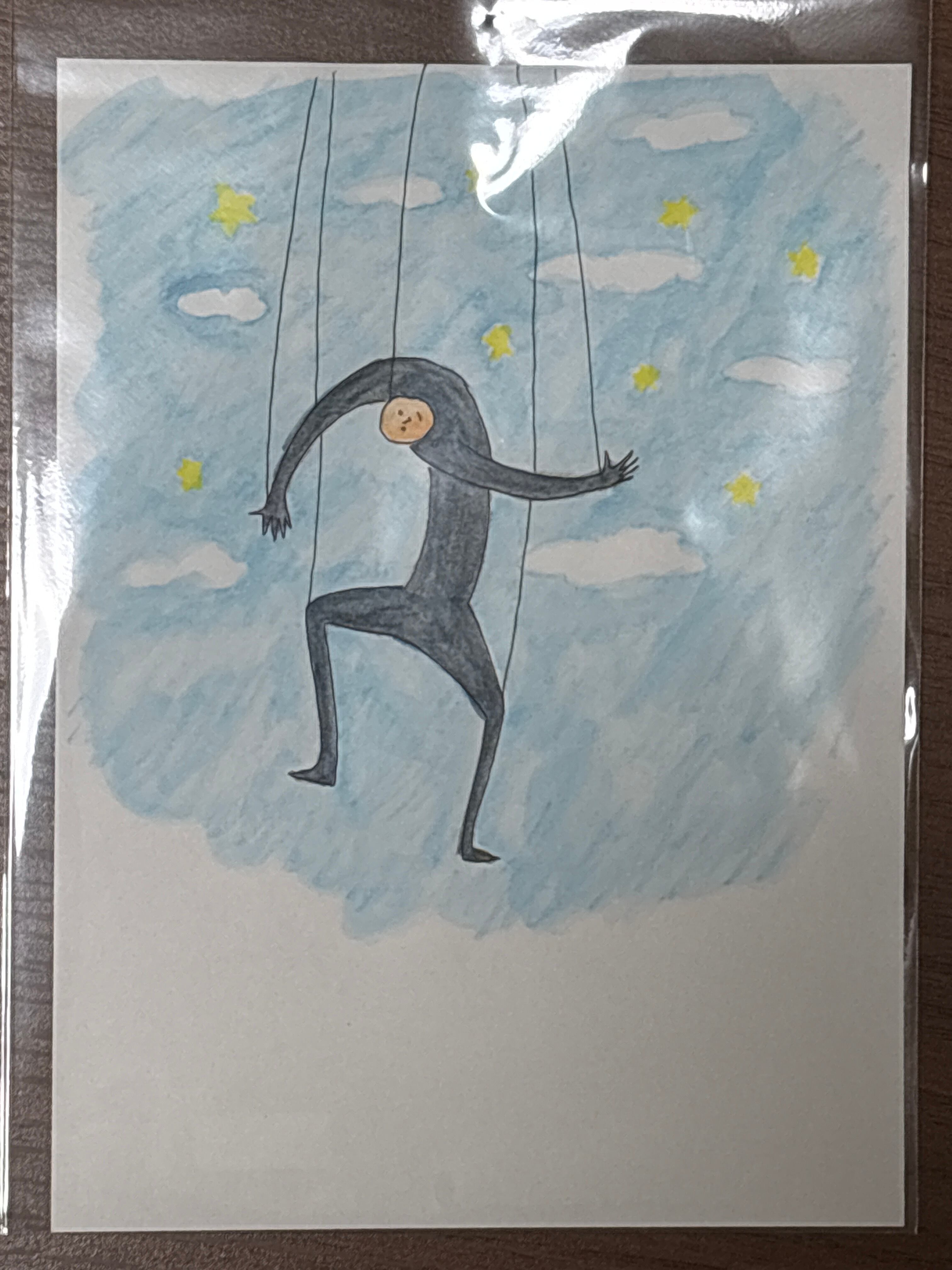 マルマンの薄口タイプの水彩画用紙B6サイズに、ボールペンと水彩色鉛筆で描いています。
