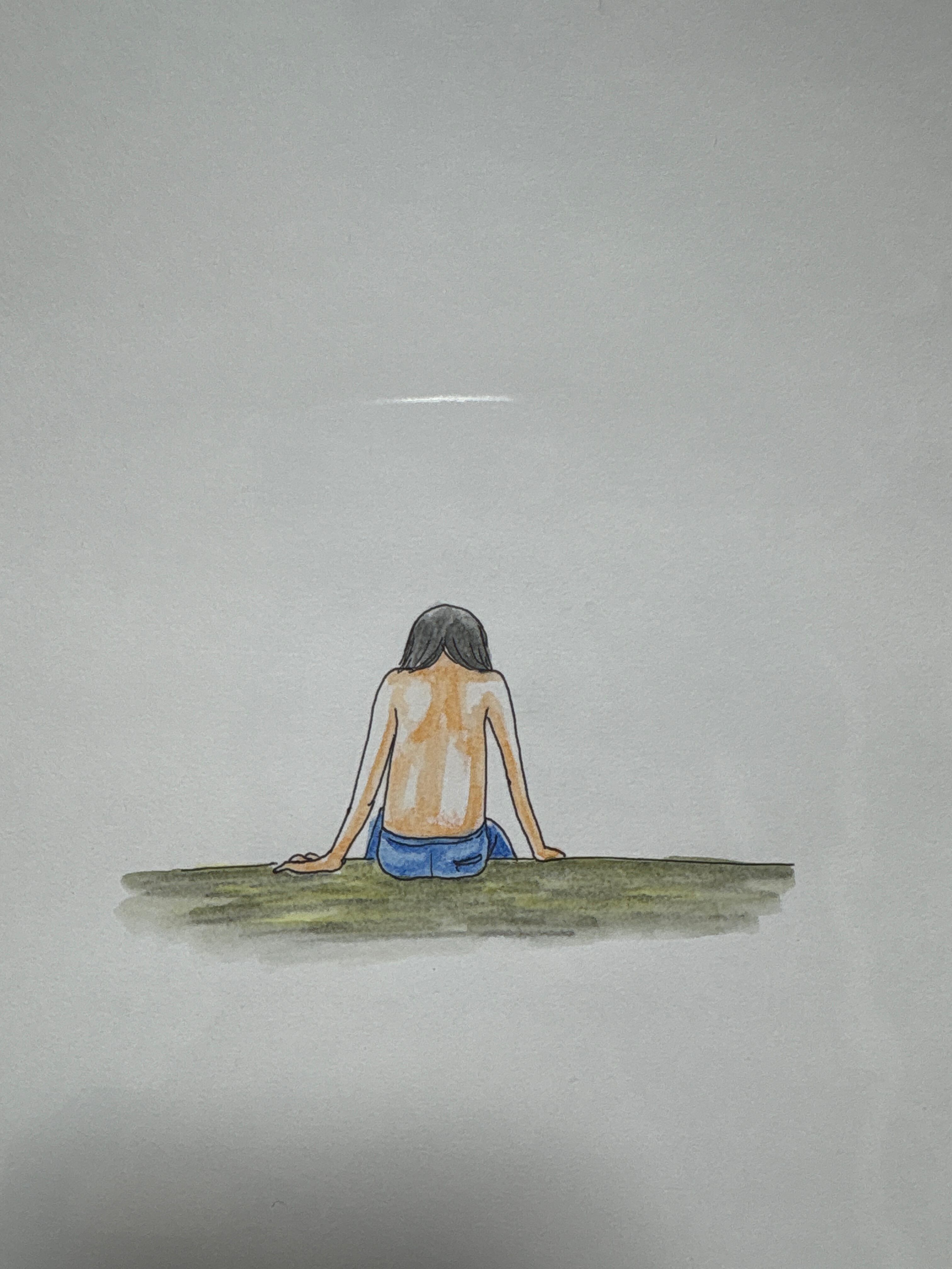 マルマンの薄口タイプの水彩画用紙B6サイズに、ボールペンと水彩色鉛筆で描いています。