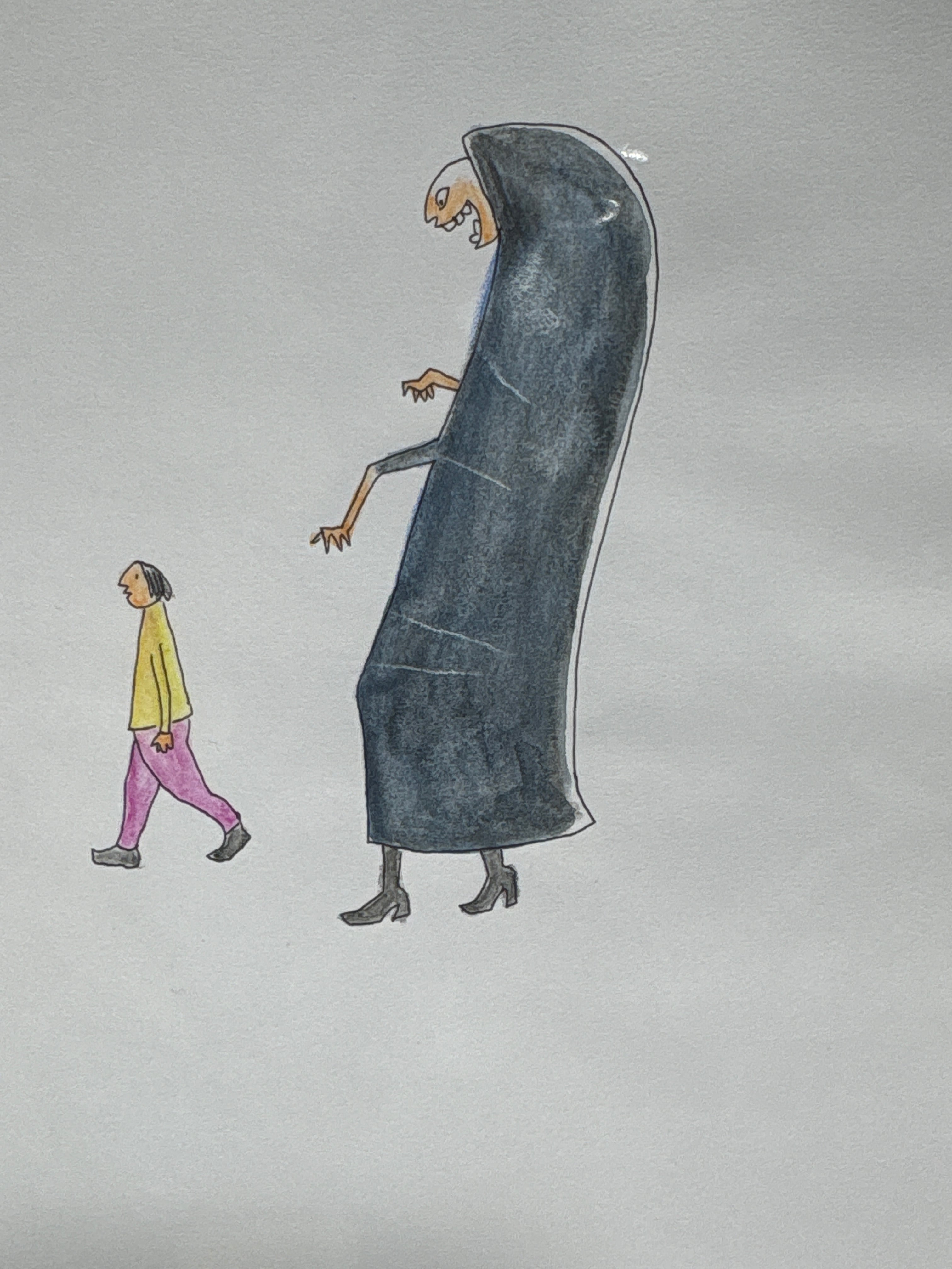 マルマンの薄口タイプの水彩画用紙B6サイズに、ボールペンと水彩色鉛筆で描いています。