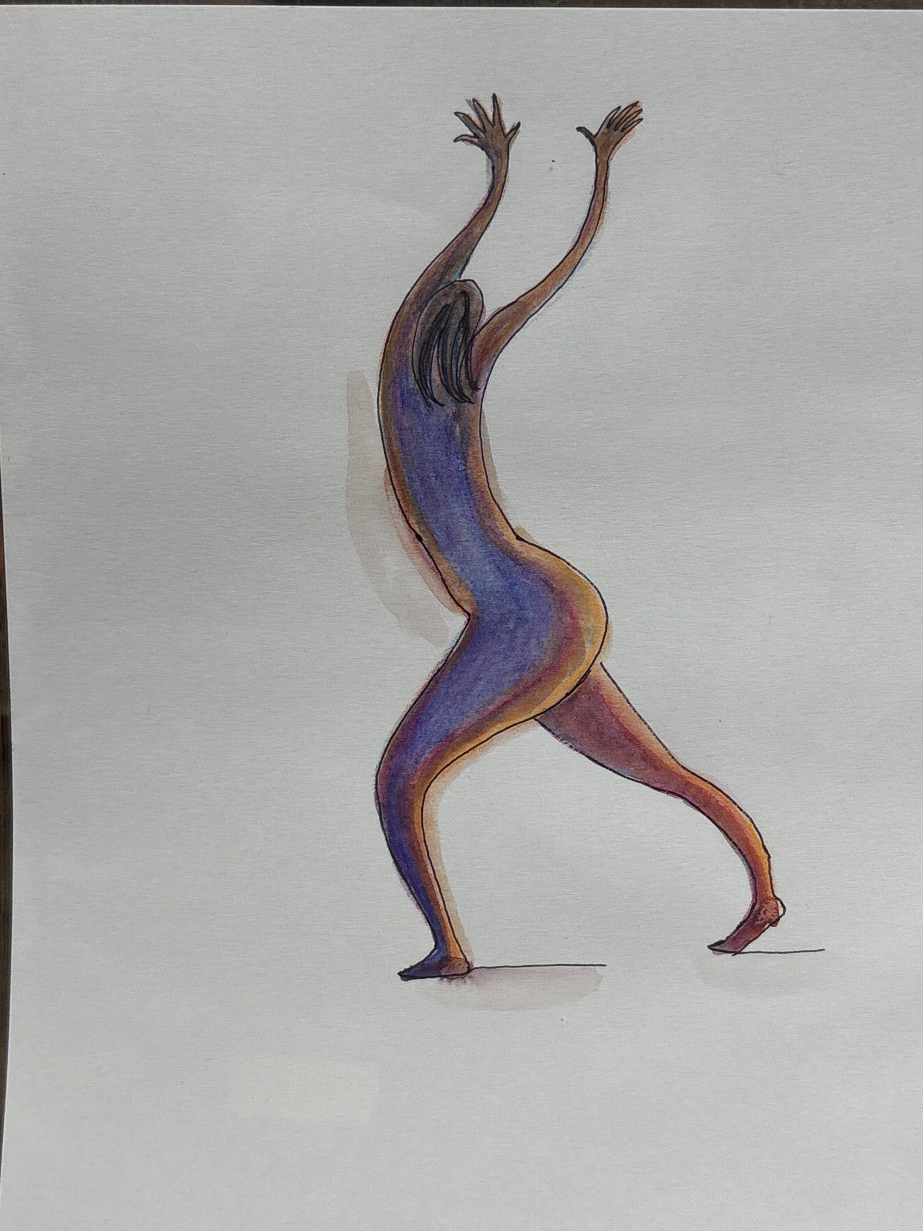 マルマンの薄口タイプの水彩画用紙B6サイズに、ボールペンと水彩色鉛筆で描いています。