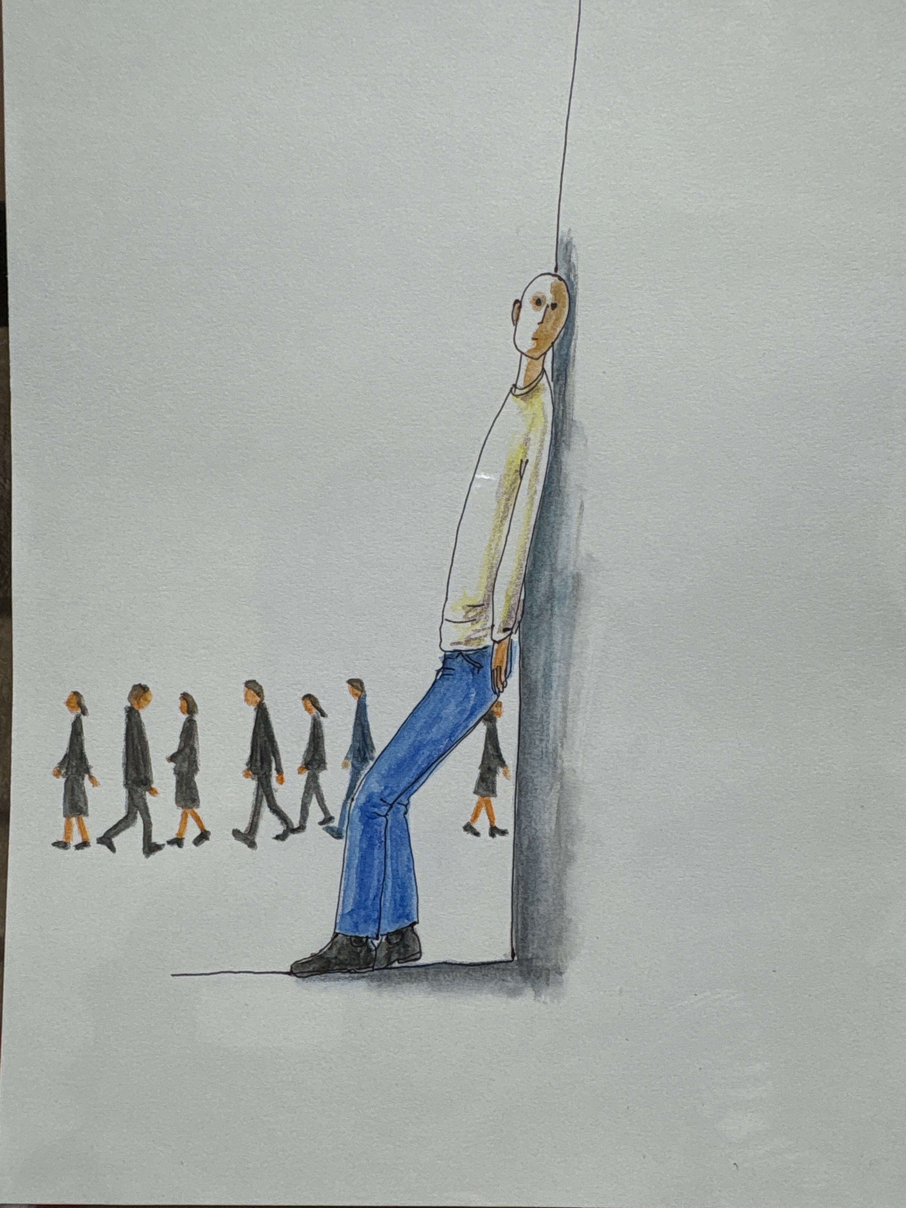 マルマンの薄口タイプの水彩画用紙B6サイズに、ボールペンと水彩色鉛筆で描いています。