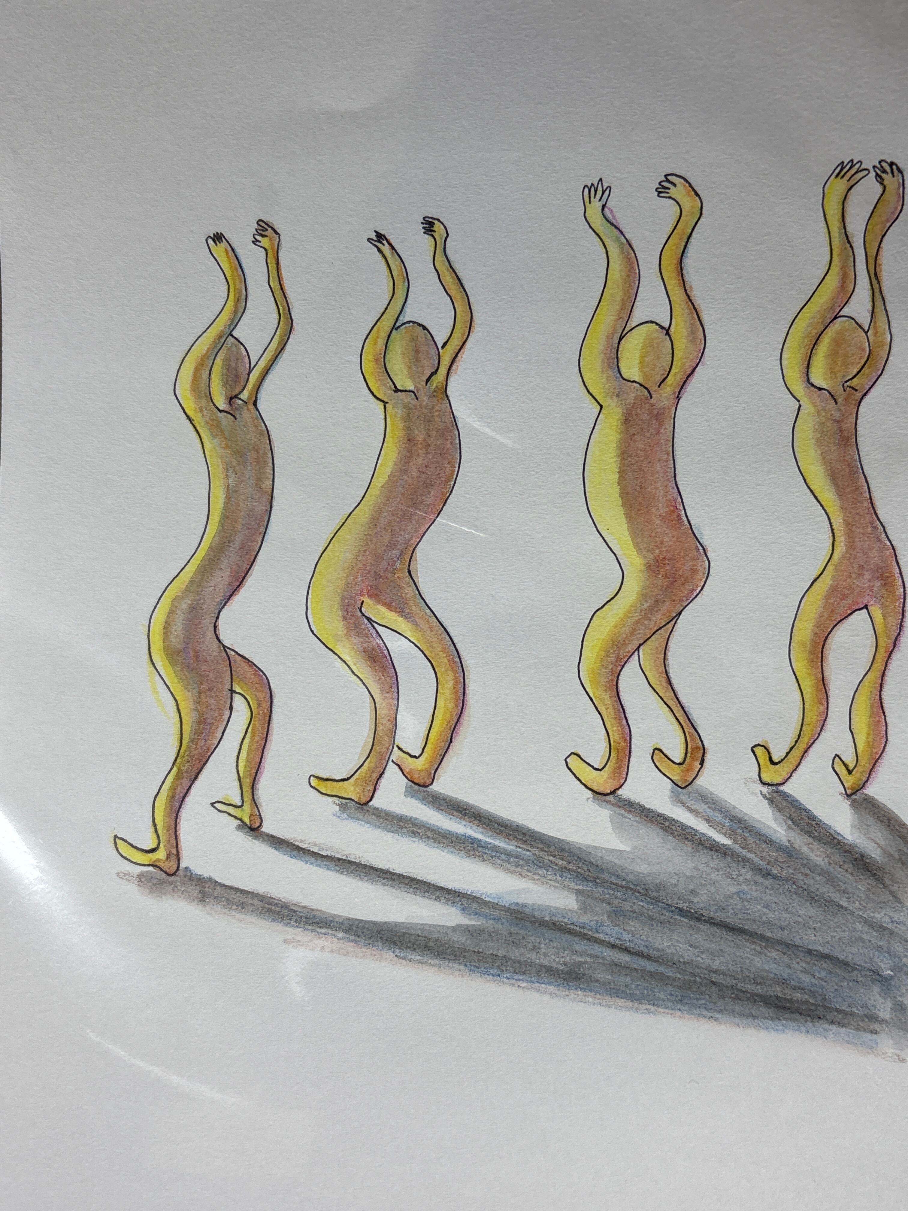 マルマンの薄口タイプの水彩画用紙B6サイズに、ボールペンと水彩色鉛筆で描いています。
