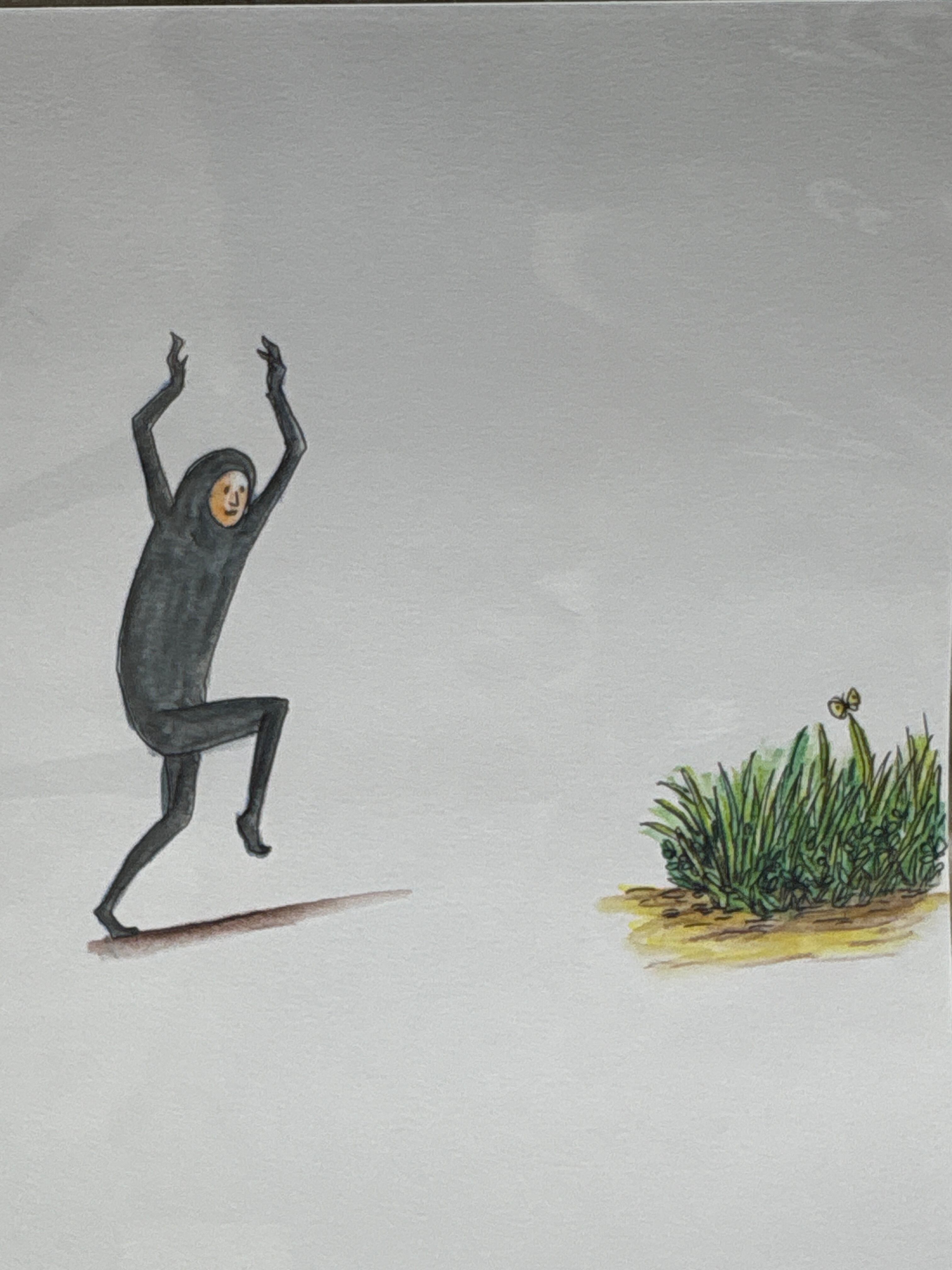 マルマンの薄口タイプの水彩画用紙B6サイズに、ボールペンと水彩色鉛筆で描いています。