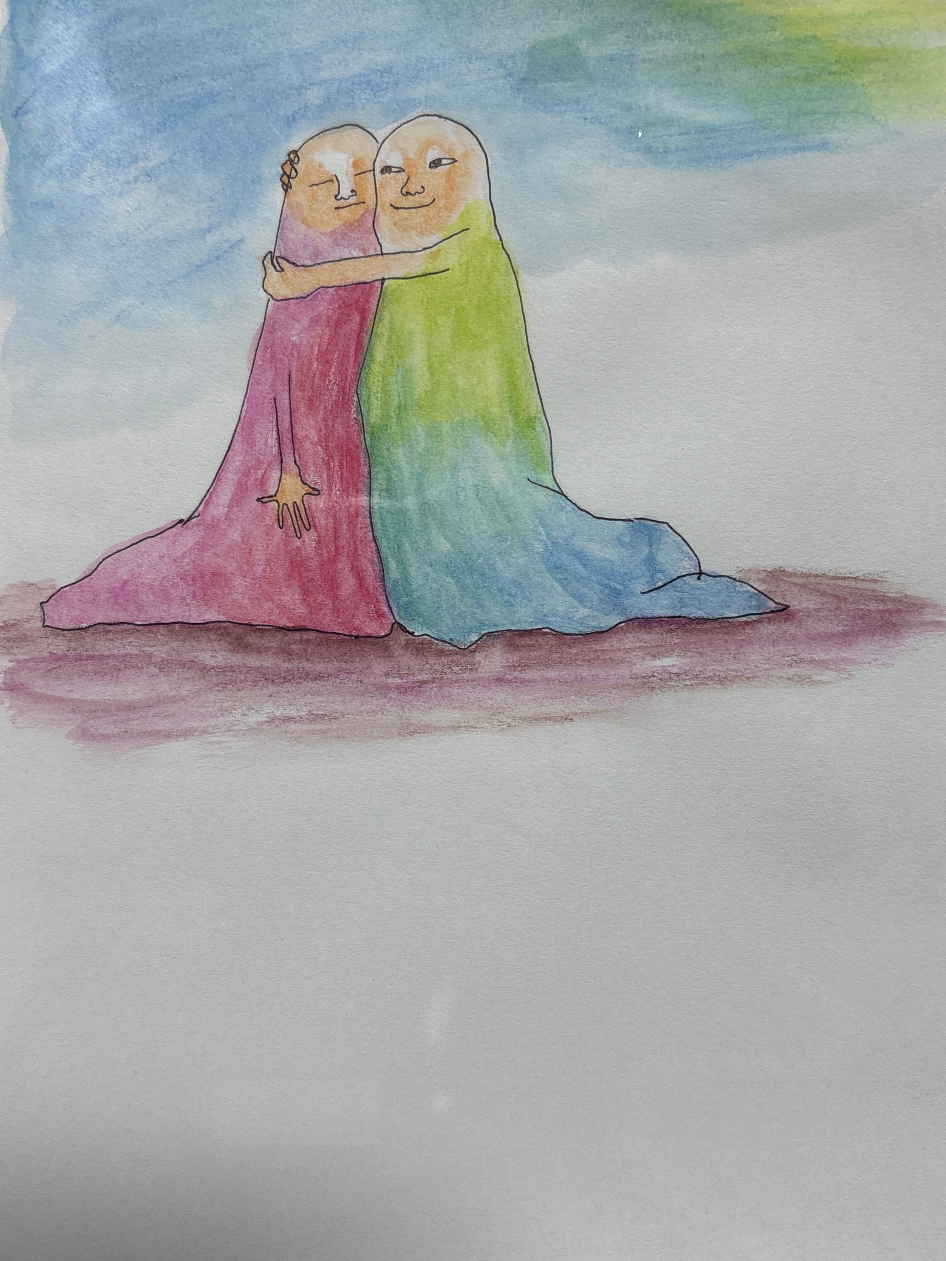 マルマンの薄口タイプの水彩画用紙B6サイズに、ボールペンと水彩色鉛筆で描いています。