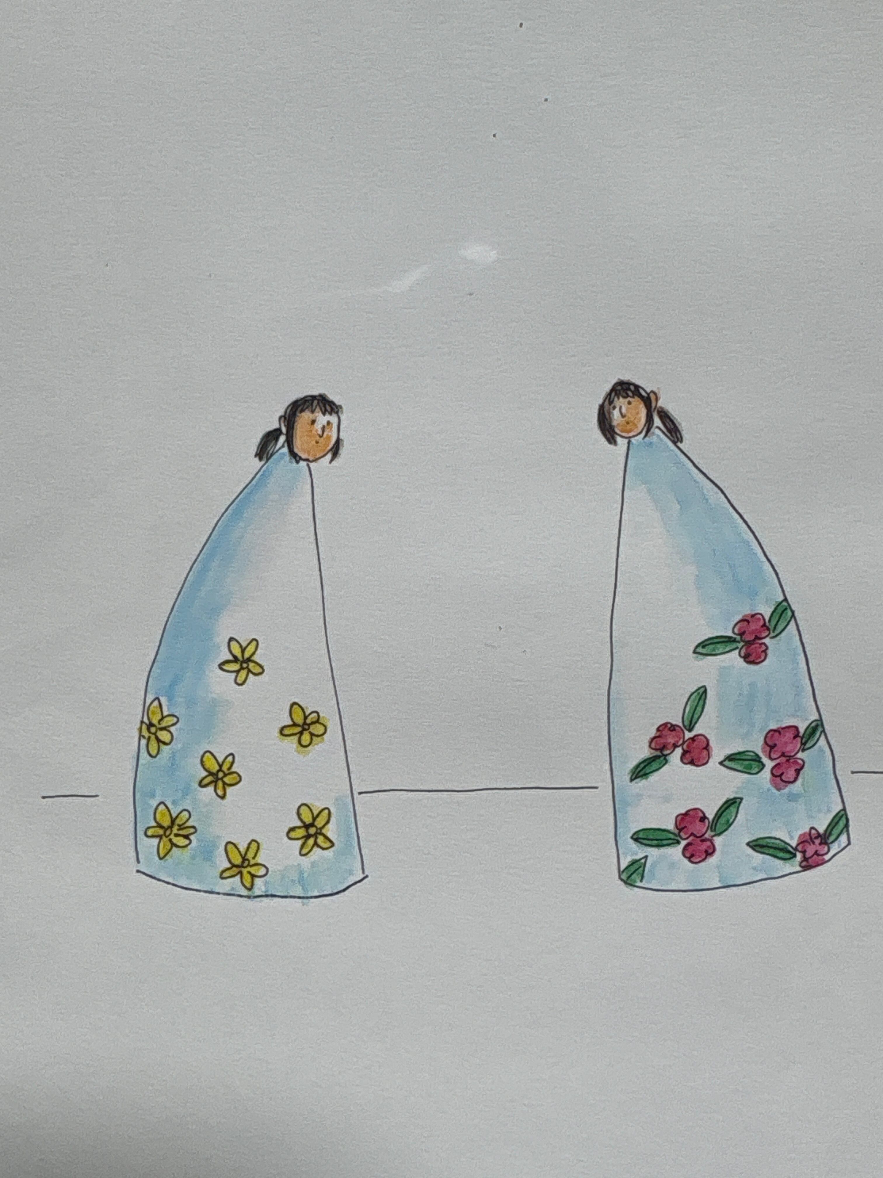 マルマンの薄口タイプの水彩画用紙B6サイズに、ボールペンと水彩色鉛筆で描いています。