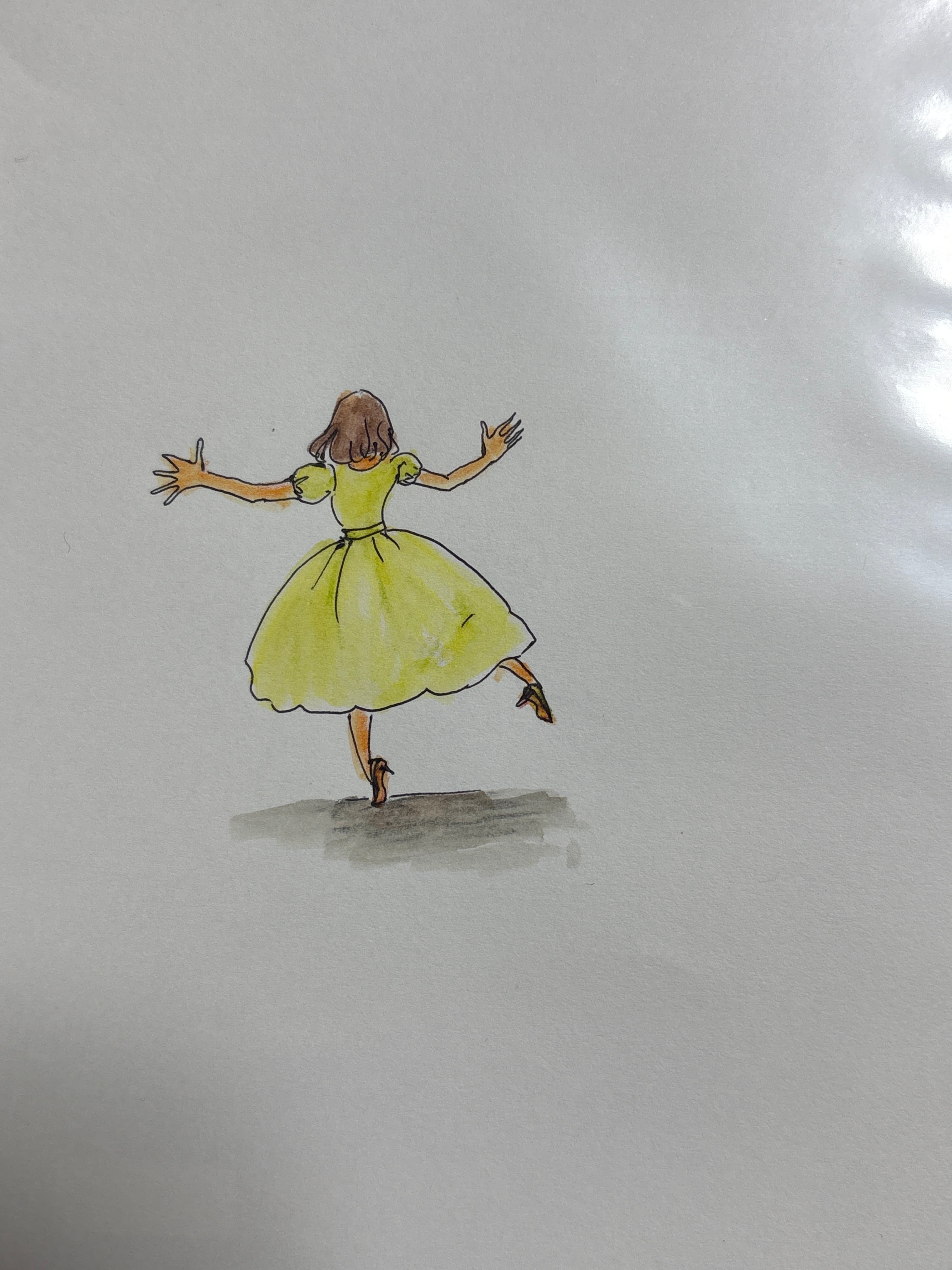 マルマンの薄口タイプの水彩画用紙B6サイズに、ボールペンと水彩色鉛筆で描いています。