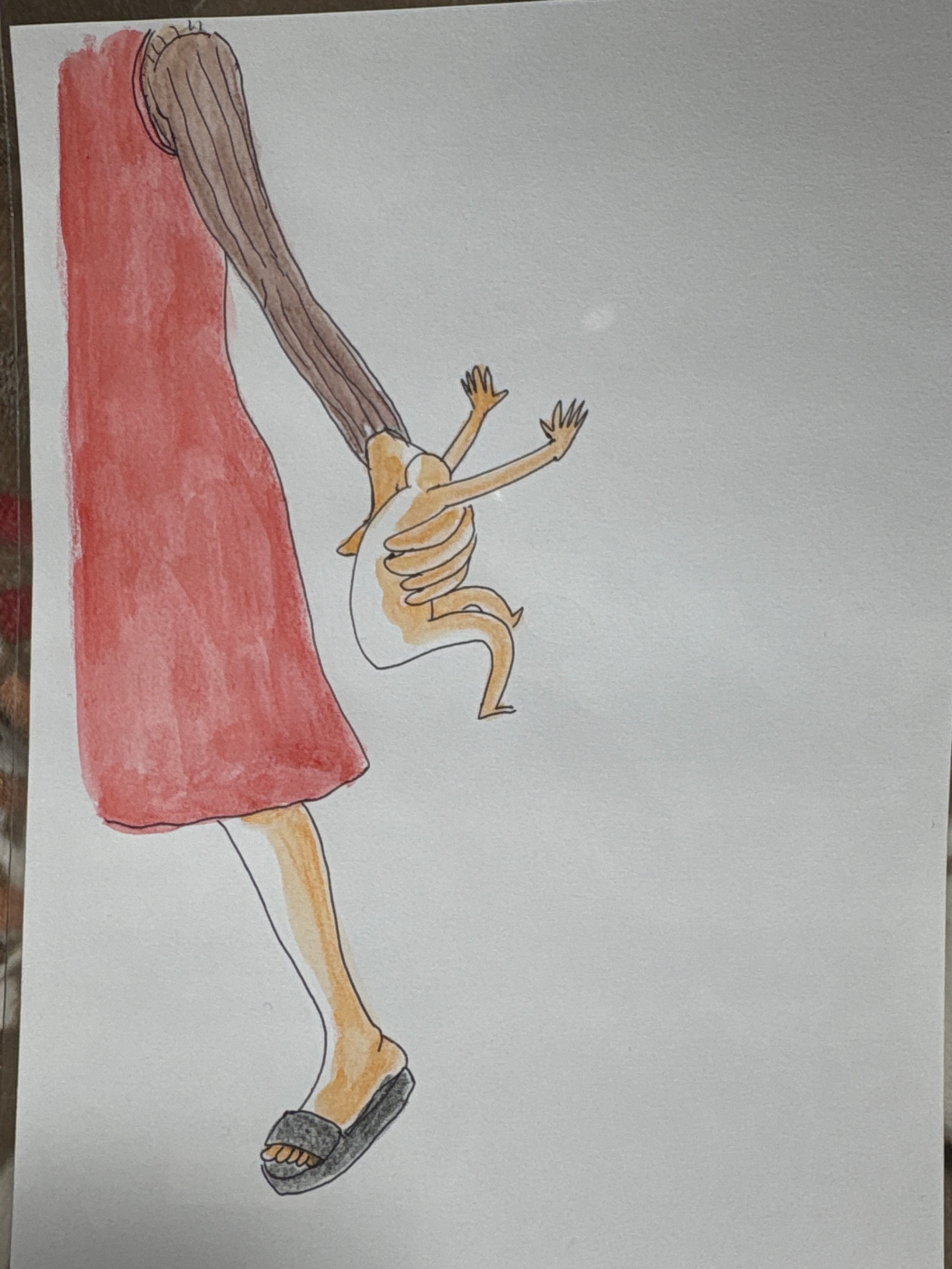 マルマンの薄口タイプの水彩画用紙B6サイズに、ボールペンと水彩色鉛筆で描いています。