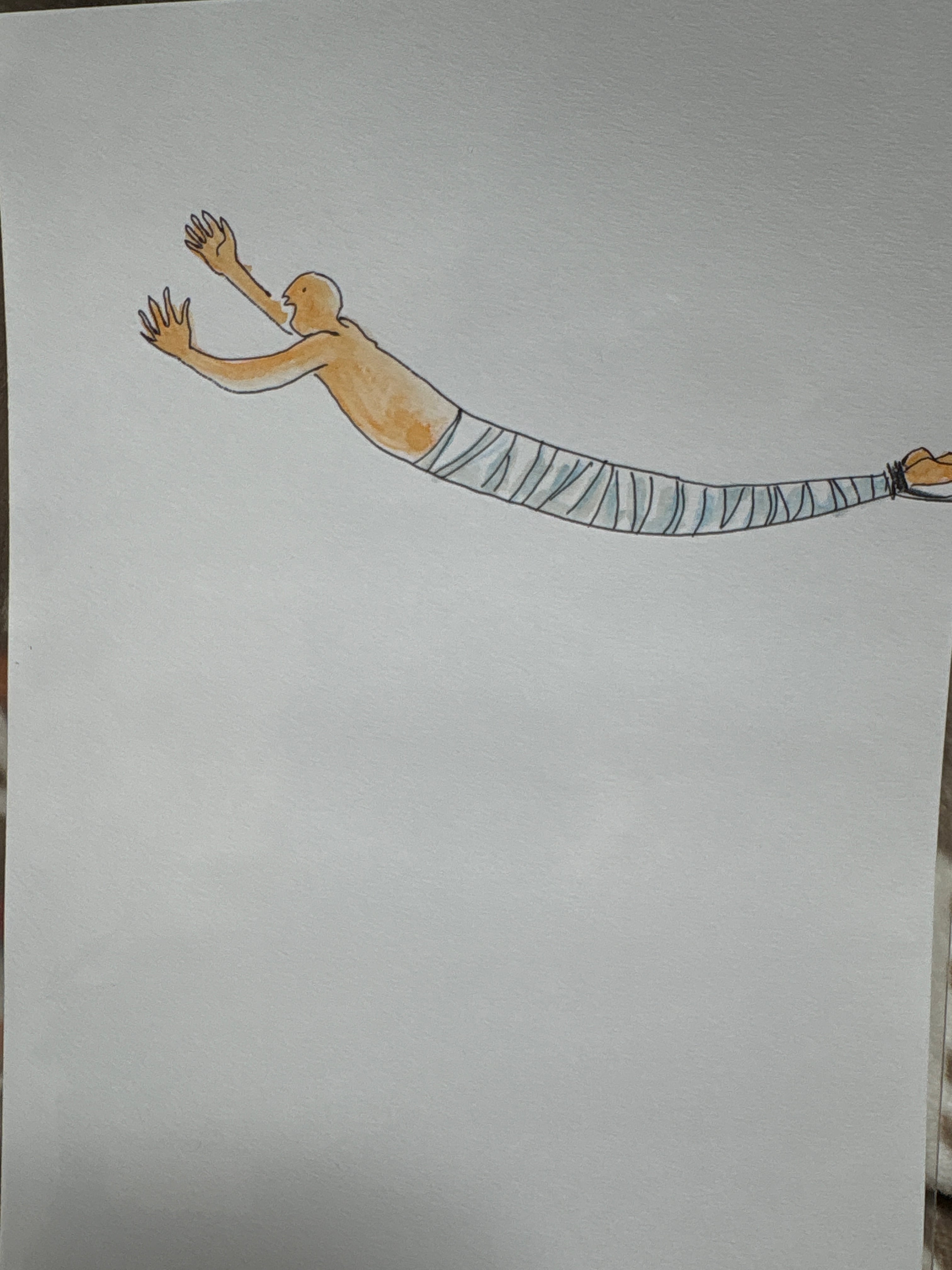 マルマンの薄口タイプの水彩画用紙B6サイズに、ボールペンと水彩色鉛筆で描いています。