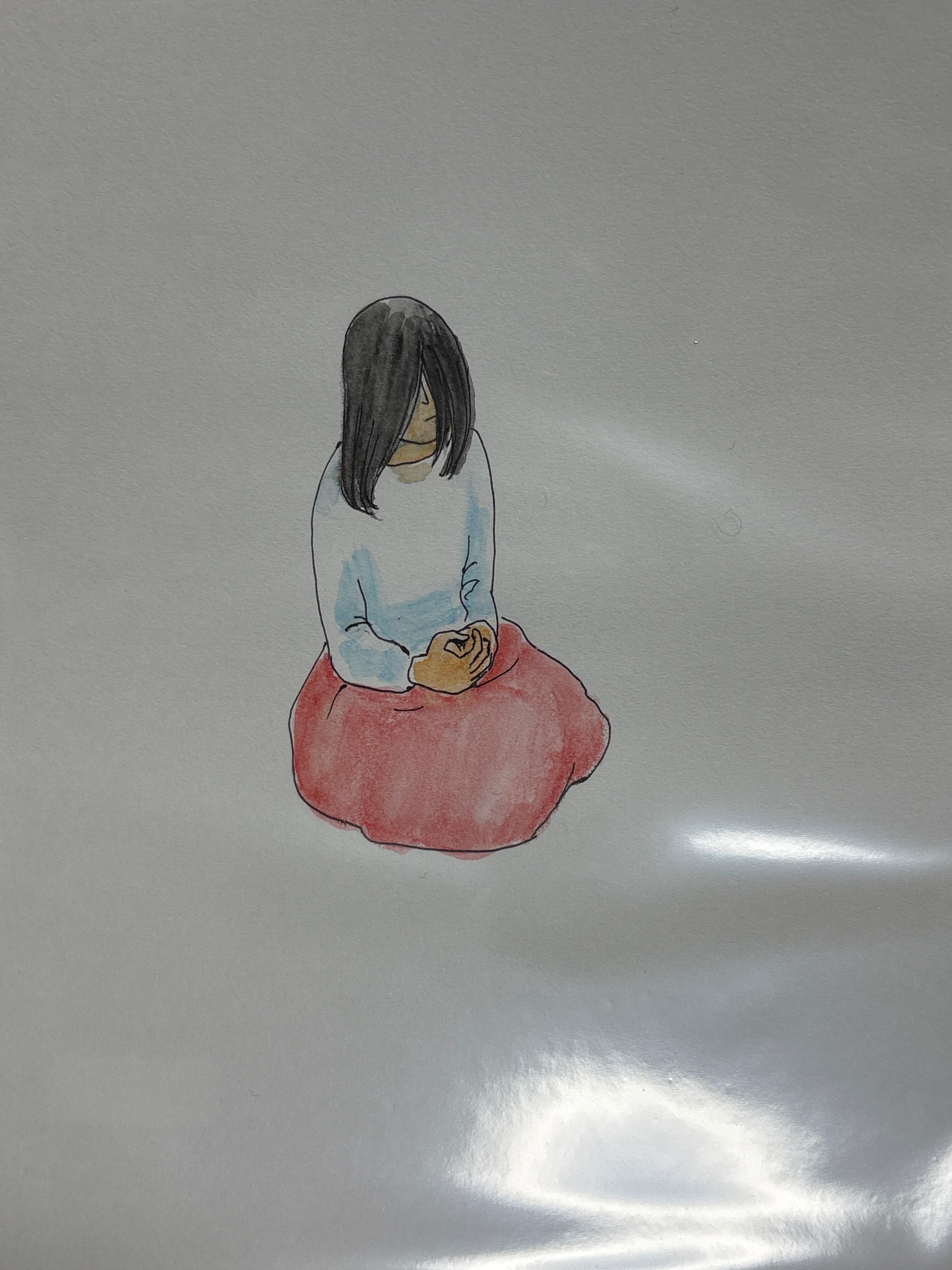 マルマンの薄口タイプの水彩画用紙B6サイズに、ボールペンと水彩色鉛筆で描いています。