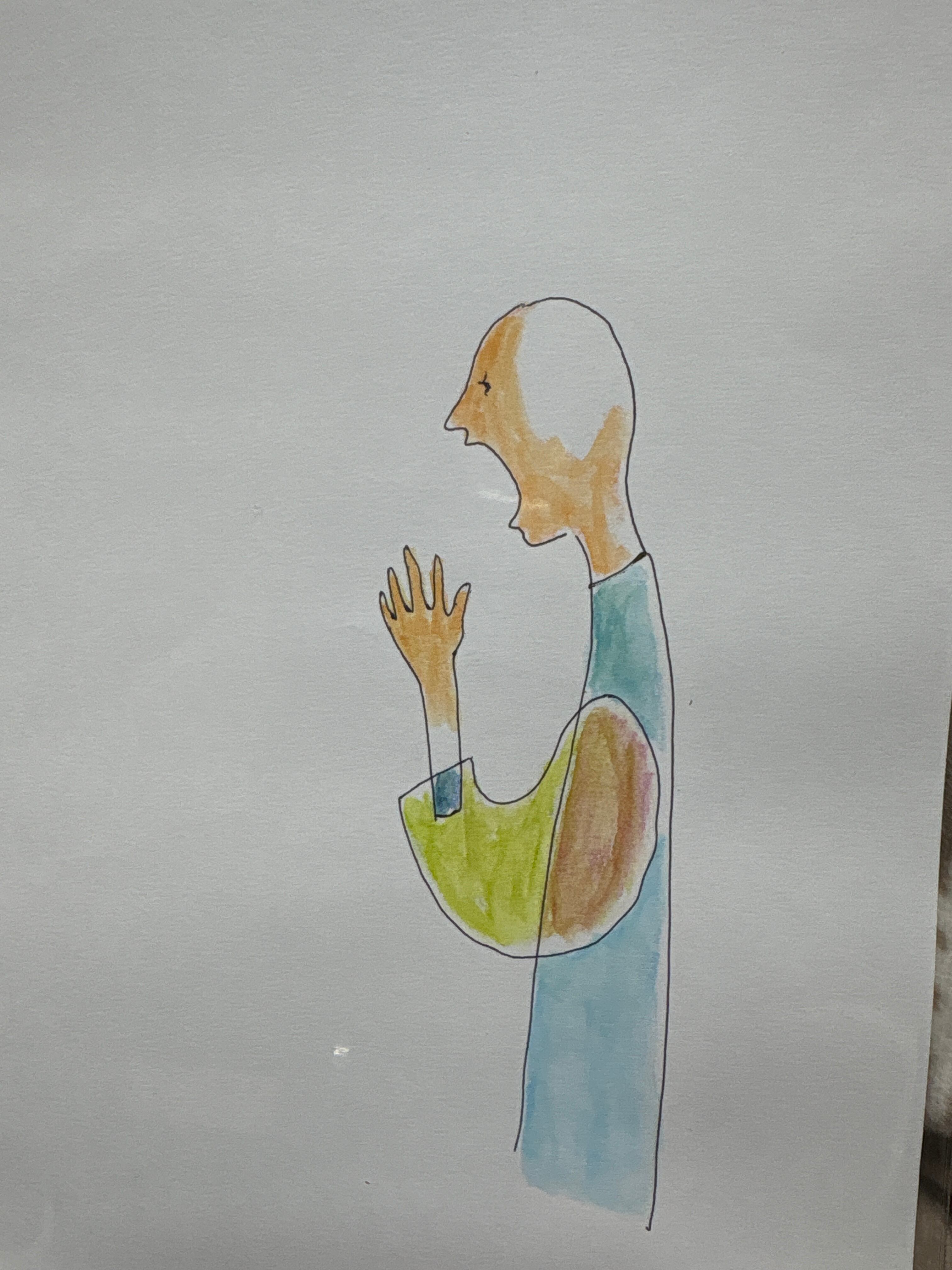 マルマンの薄口タイプの水彩画用紙B6サイズに、ボールペンと水彩色鉛筆で描いています。
