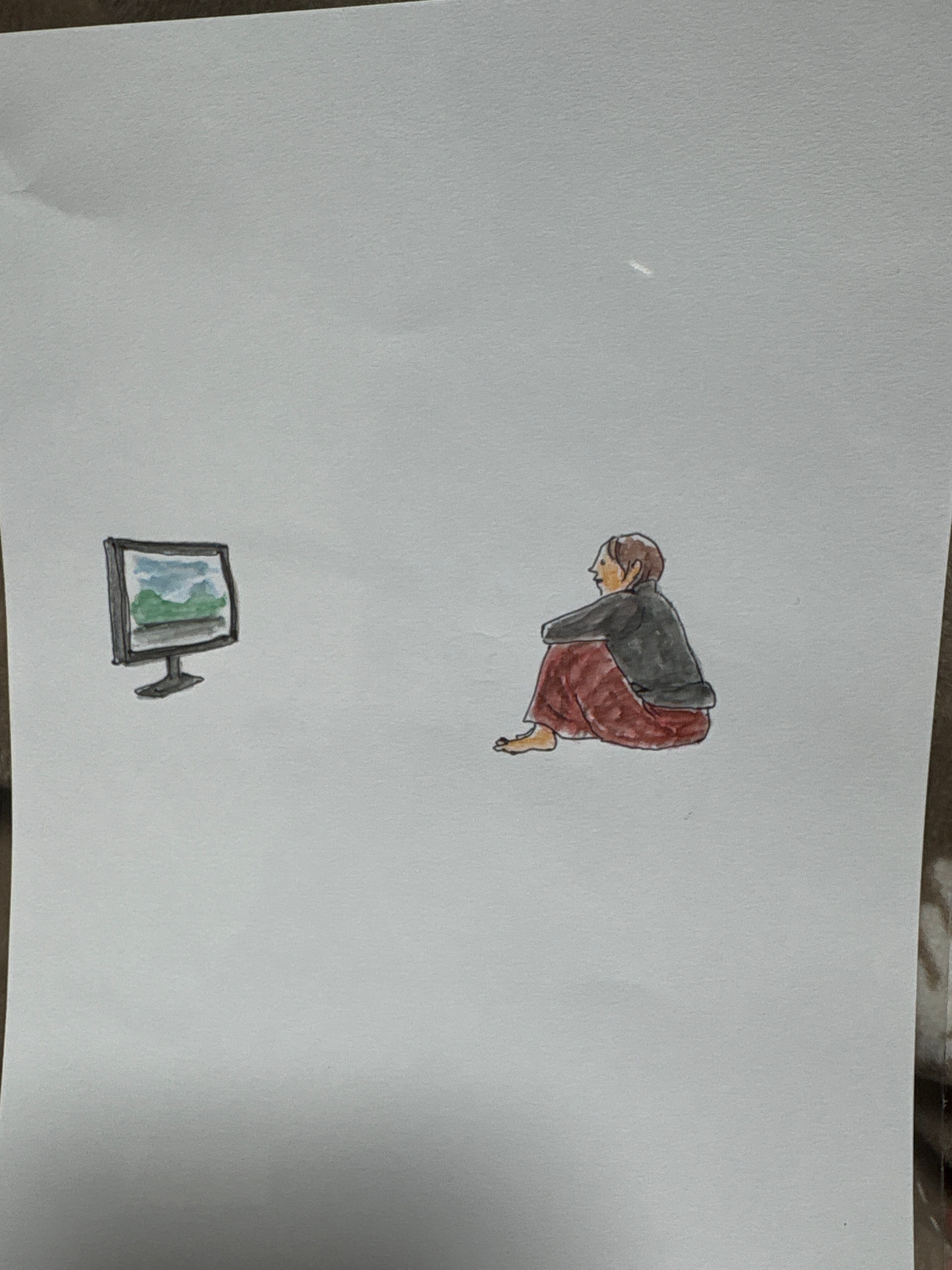 マルマンの薄口タイプの水彩画用紙B6サイズに、ボールペンと水彩色鉛筆で描いています。