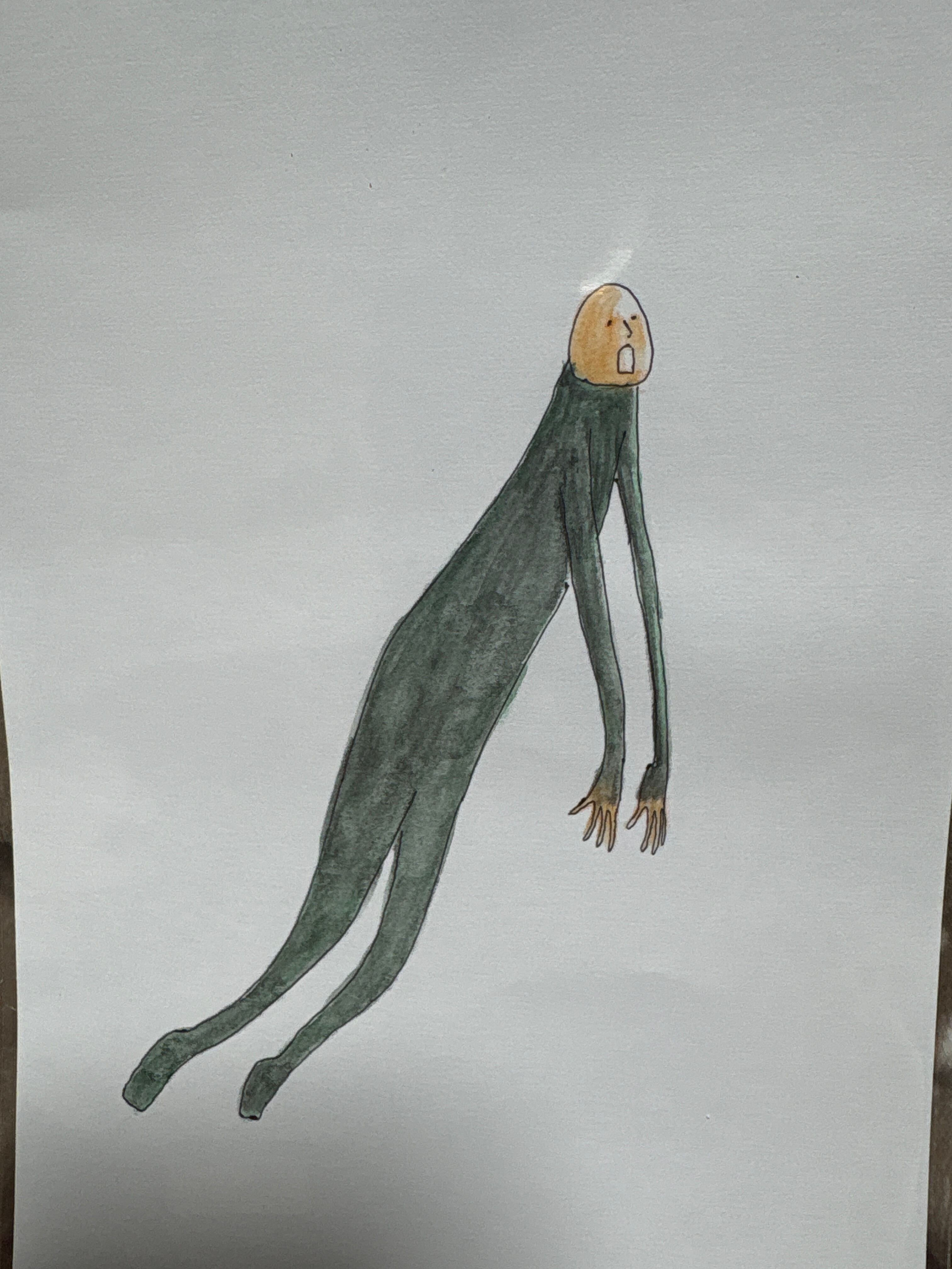 マルマンの薄口タイプの水彩画用紙B6サイズに、ボールペンと水彩色鉛筆で描いています。