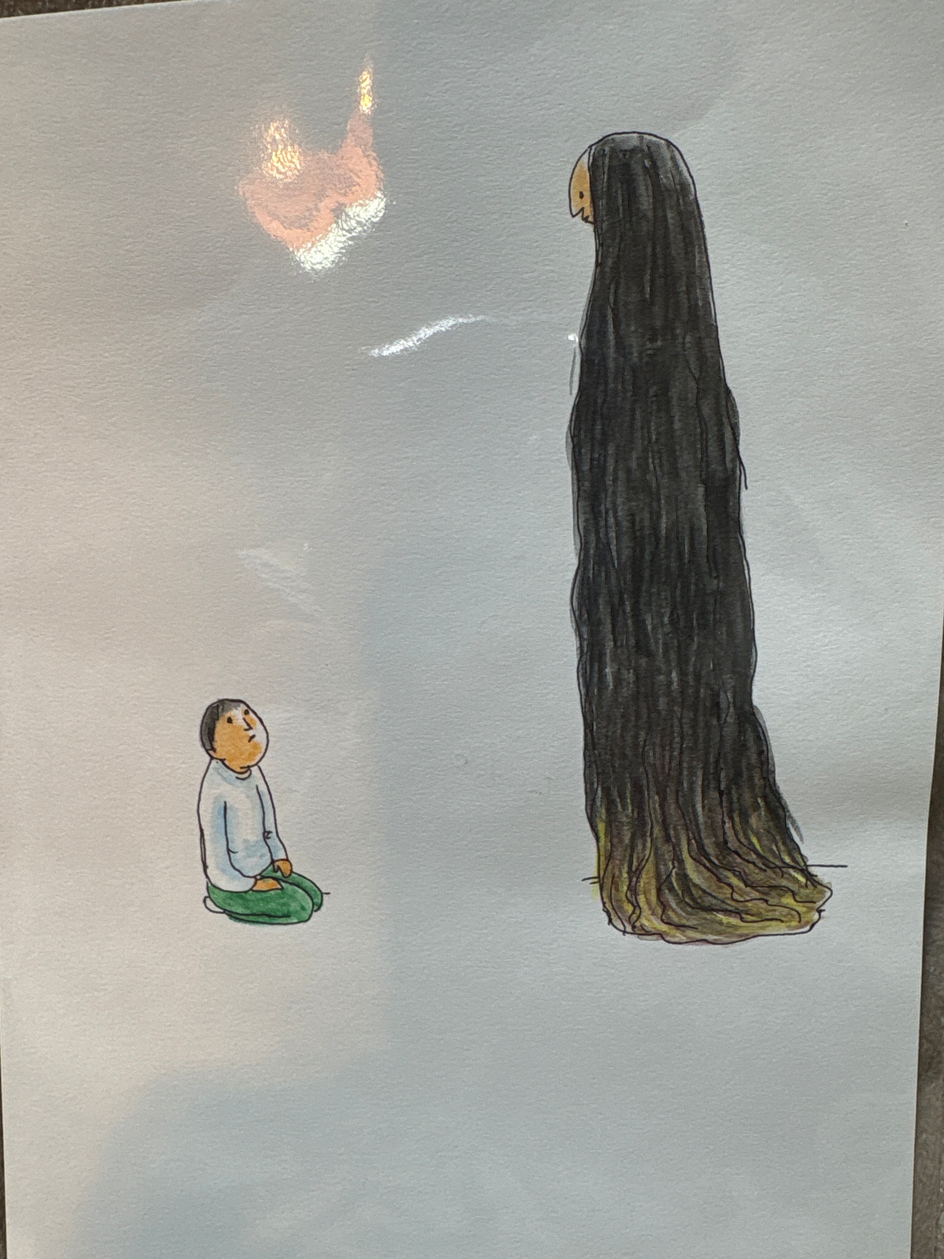 マルマンの薄口タイプの水彩画用紙B6サイズに、ボールペンと水彩色鉛筆で描いています。