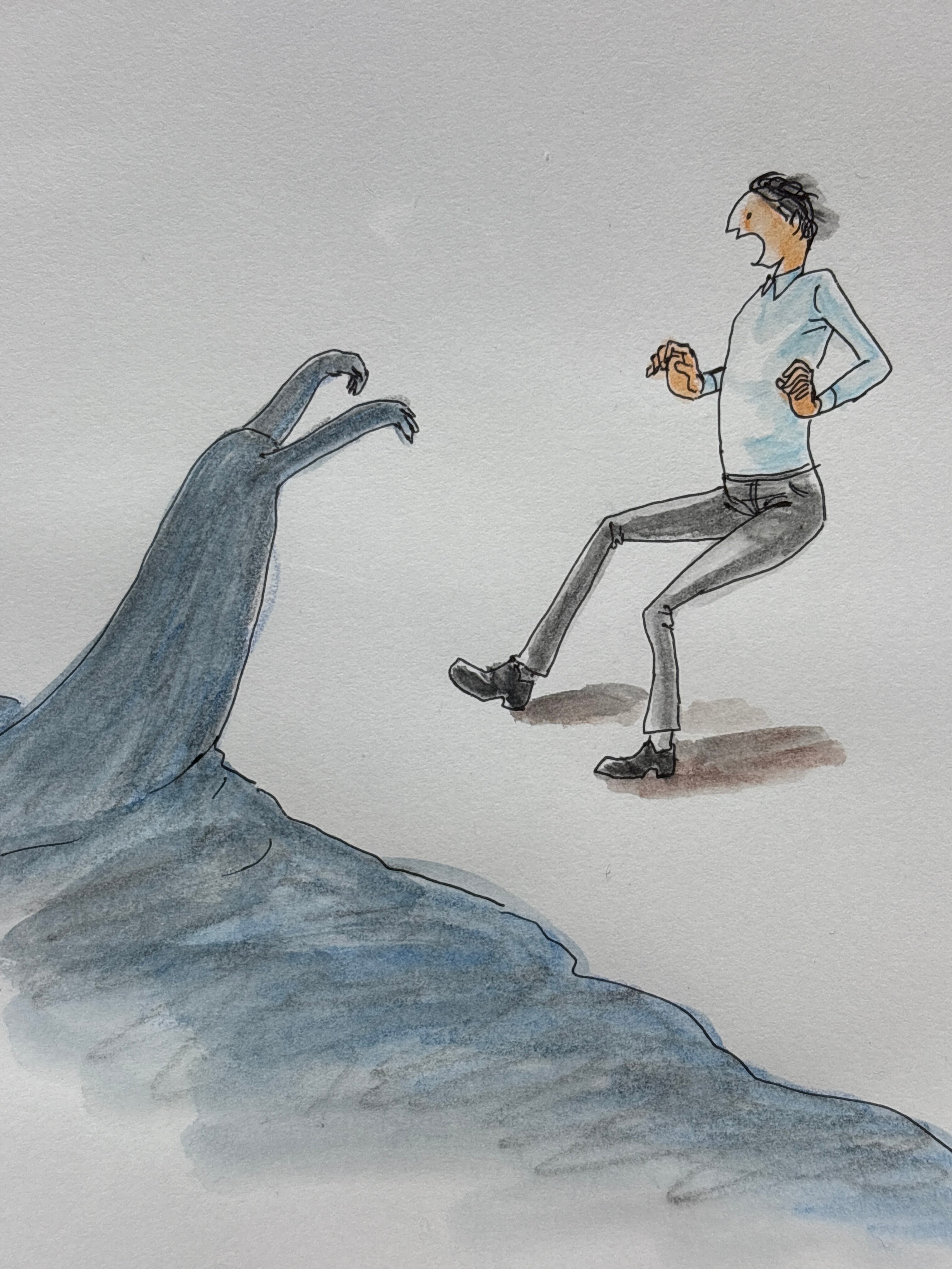 マルマンの薄口タイプの水彩画用紙B6サイズに、ボールペンと水彩色鉛筆で描いています。