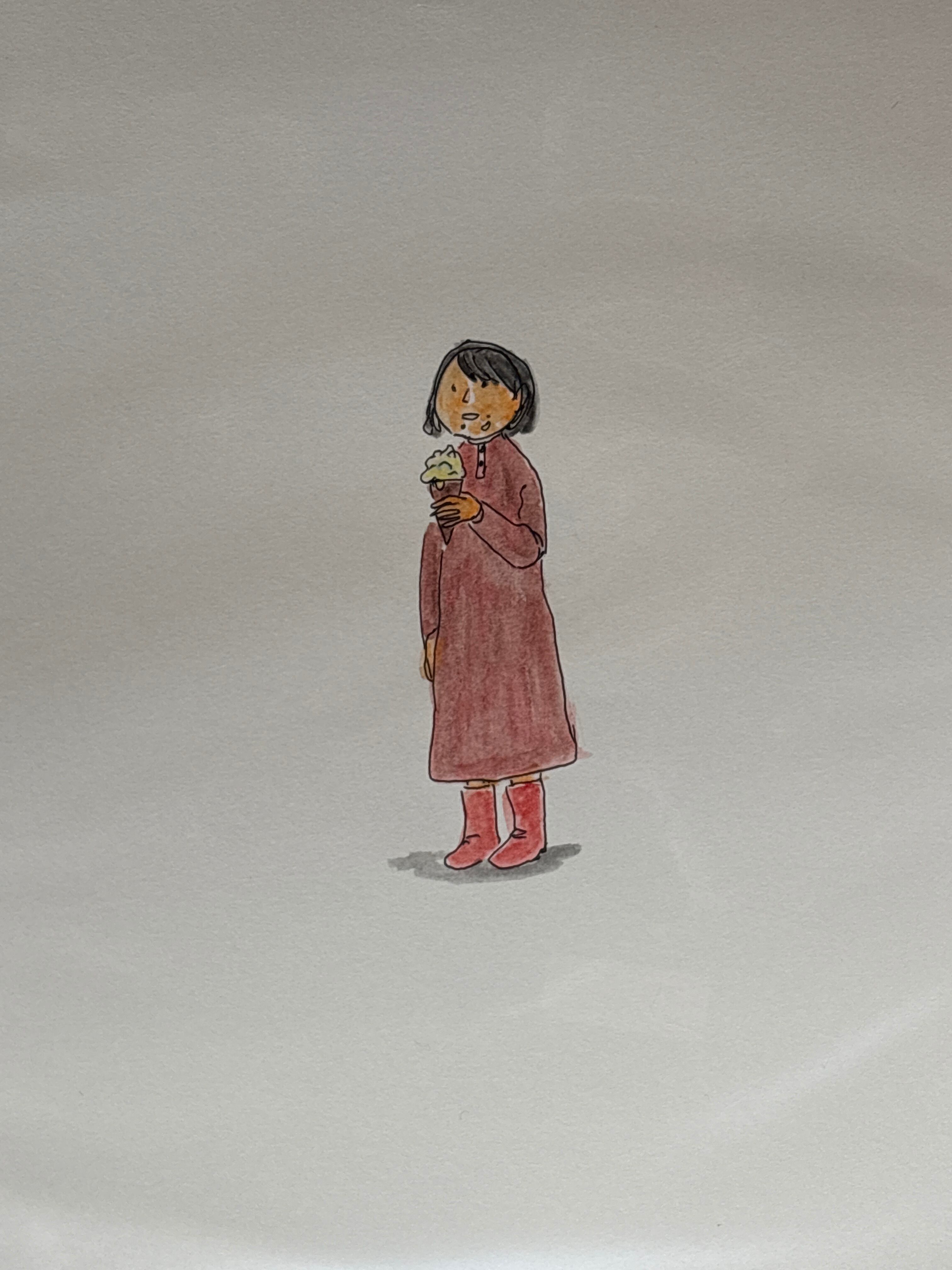 マルマンの薄口タイプの水彩画用紙B6サイズに、ボールペンと水彩色鉛筆で描いています。